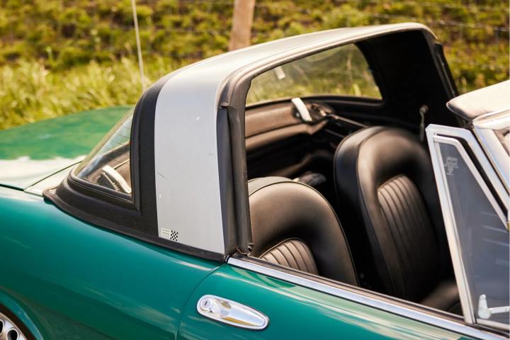 The paintwork has been repainted and is still in good condition. The original 15" Alfaholics alloy wheels are made of ultra-light magnesium and are in top condition. The bodywork is still very clean, rust- and damage-free, and the original spot welds are still visible. The rubbers are also intact and the lighting is fresh. The round headlights are fitted with streamlined cover lenses, which have been renewed. The linen convertible top is in very good condition, free of tears and opens and closes properly. A new tonneau cover is also included. The beautiful targa hardtop gives the car a unique look and is in good condition. The rear bumper, mirrors and windscreen have also been recently renewed. All in all, the Alfa is in good visual condition. The model was designed by the renowned designer “Pininfarina”, whose logos are displayed on the side of the car.
