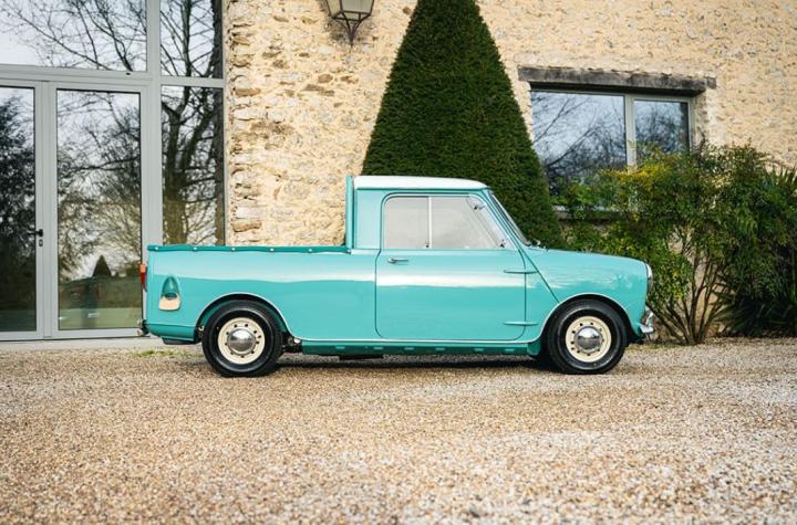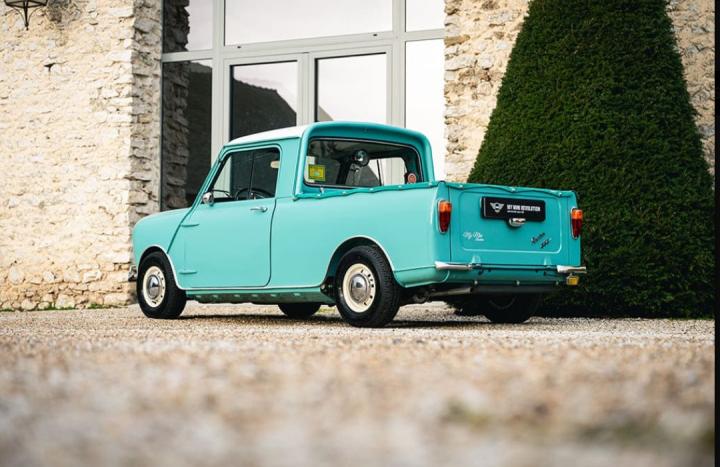 Dérivé directement de la plateforme originale de la Mini, ce modèle Pick-up conserve le design caractéristique de la marque, avec ses lignes arrondies et son format compact, tout en étant spécifiquement conçu pour transporter des charges. Contrairement au Mini Van, il possède une benne arrière intégrée dès sa fabrication, lui conférant une vocation utilitaire clairement affirmée.