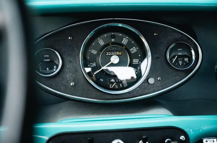 Sous son capot, le petit moteur de 850cc a entièrement été remis à neuf dans notre atelier, ainsi que sa boîte de vitesses, lui offrant une conduite agréable et fidèle à l’esprit d’origine du modèle.