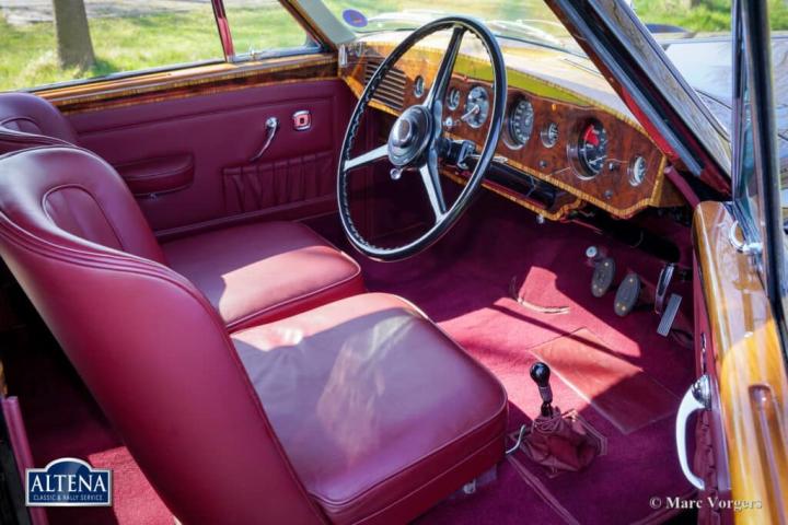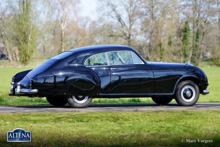 Bentley R Type Continental ‘by Racing Green Engineering’, bouwjaar chassis 1953. Chassisnummer: B40UM, motornummer: B123U, carrosserienummer 00052. Kleur zwart gecombineerd met een bordeauxrood lederen interieur afgewerkt met donkerrood wollen tapijt. Deze majestueuze Bentley R Type Continental werd voltooid door Racing Green Engineering (Wales, VK) in 2015. Deze speciale Bentley R Type Continental is gebaseerd op een Bentley R-type chassis en de mechanische componenten hiervan uit 1953. Het chassis, de motor, de versnellingsbak en alle andere originele componenten zijn volledig gerestaureerd en gereviseerd volgens de hoogste normen en tot in de perfectie afgewerkt. De aluminium carrosserie is met de hand vervaardigd door de vakmensen van Racing Green Engineering naar het voorbeeld van de originele vorm van het R Type Continental ontwerp van H.J. Mulliner. De originele R Type Continental werd gepresenteerd in 1952 en geproduceerd tot 1955. Slechts 208 exemplaren zijn oorspronkelijk gebouwd door Bentley. De R Type Continental herdefinieerde de naoorlogse Bentley en is een van de meest indrukwekkende auto’s ooit ontworpen. De Continental werd gebouwd met een strikt streefgewicht van 1750 kg: in 1950 bestond er geen band die een groter gewicht bij 185 km/u of meer kon dragen. De R Type Continental werd zeer geprezen door Autocar Magazine: “Welke memorabele auto-ervaringen men ook heeft gehad, dit was iets anders… deze Bentley is een modern vliegend tapijt dat grote afstanden overbrugt en de inzittenden bijna net zo fris aflevert als toen ze vertrokken.” Deze Bentley R Type Continental, naar perfectie gebouwd door Racing Green Engineering, heeft sinds zijn voltooiing slechts 2329 kilometer gereden. De auto verkeert nog steeds in als nieuwe concoursstaat! De 4566 cc R Type zescilindermotor loopt soepel en krachtig, en de volledig gesynchroniseerde R Type vierversnellingsbak schakelt perfect. Het interieur is bekleed en afgewerkt met het fijnste leer, wol en walnotenhout. Het houten dashboard en de andere van hout vervaardigde interieurdetails zijn ware kunstwerken. Deze auto heeft sinds de voltooiing één eigenaar gekend. Dit is uw kans om een fantastische replica te kopen van de meest gewilde vintage Bentley uit de naoorlogse periode. Deze exclusieve auto wordt geleverd met originele Bentley-documenten en een restauratierapport.