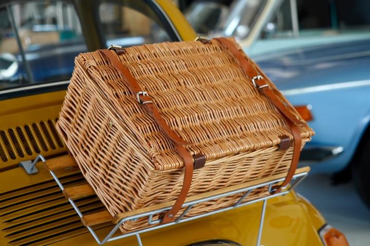 completely restored, photo book available, 3 owners, no work to be done, stunning color combination, rust free body, completely original, wicker briefcase