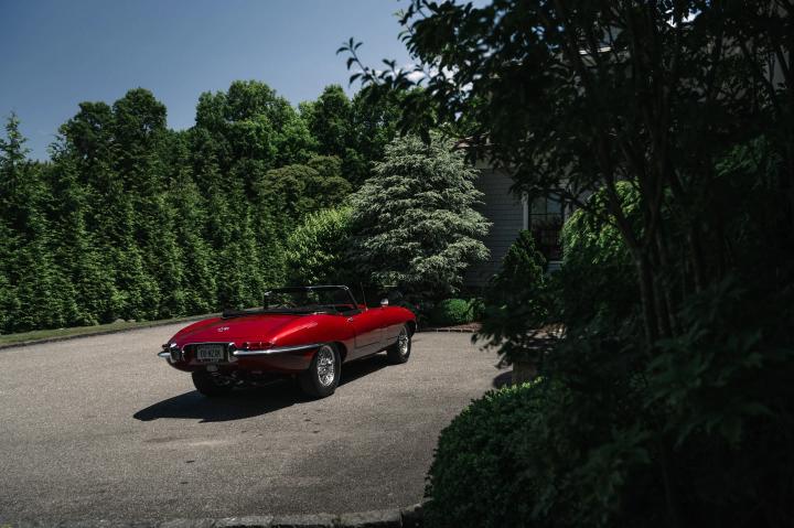 A standout example of the Series 1 E-Type is this 1967 Jaguar XKE Roadster presented in its original Opalescent Bordeaux Claret paint, complemented by a black leather interior and matching convertible top. Despite being built in 1966, it wasn't registered until November 1966, thereby designated as a 1967 model. Originally commissioned by Hoffman's Jaguar Cars in New York, this E-Type was first enjoyed by its first owner for nearly a year before it passed to a second owner, in October 1968.