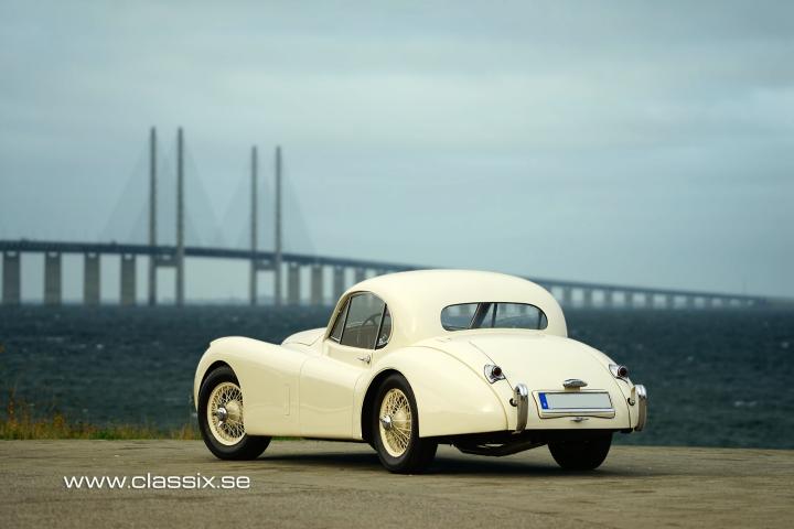 History: This Jaguar XK120M was sold new by the Swedish Jaguar importer Fredlunds in Stockholm in December 1953. The car had a few owners during the early years of its life, and then in 1974, Mr. Wramell from Malmö purchased the car and began a complete restoration. The body was sent to Oldham & Crowther in the UK, along with many of the parts. Two factory-new fenders were sourced, and two new rear fenders were handcrafted. Meanwhile, the chassis was sandblasted and painted in Sweden, and the body was painted and reassembled with the chassis. The car was completed from the restoration around 1988.