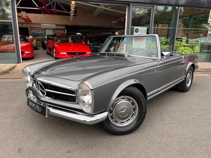 We are proud to offer this stunning Mercedes 280 SL Pagoda which has been beautifully restored in metallic grey with blue leather upholstery. This car was imported from California to the UK in 2014 then underwent a full restoration and converted to European specification prior to its registration in 2016. It comes complete with its hard top roof, original owner’s manual, service book, Becker audio manual, USA service directory, various receipts and invoices from its time in the US alongside all the restoration and service paperwork since the car has been in the UK. It is in need of nothing, everything works as it should and is ready and waiting to be thoroughly enjoyed by its new owner. If you have any further questions or would like to book an appointment to come and view this beautiful car please call a member of our sale team on 01628 825110. At Knowl Hill Performance & Luxury your experience with us is key, we offer full main dealer facilities from service, MOT and warranties to detailing, tyre changes and everything in-between. All our cars come fully detailed, and clear HPI certificate.