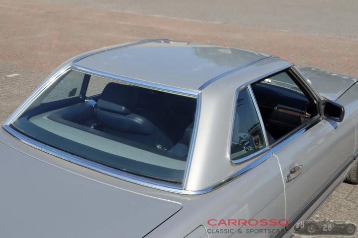 De chroom details en accenten van de auto zijn nog netjes. Hij is in bezit van een hardtop die in de carrosseriekleur is uitgevoerd. Onderaan de auto zitten er 15 inch lichtmetalen velgen die het plaatje compleet maken. Bij de auto zit een volle "History File". Hierin zit onder andere een Carfax report. Hierin wordt vermeld dat de Mercedes een schadevrij verleden heeft. Ook is de lage mijlenstand hierin gedocumenteerd. Op 27-04-1992 was deze 69.856MLS, en op 26-11-1993 99.000MLS, 27-06-1994 107.380 MLS, 22-02-2002 110.157 MLS, 28-02-2003 111.588 MLS, 27-09-2011 125.593 MLS. Bij de originele documentatie zit zelfs nog het Pre- Delivery inspectie rapport van Mercedes-Benz welke gedaan werd voor aflevering aan de eerste eigenaar. Deze mooie Mercedes heeft de laatste jaren weinig gereden, hierdoor is een grote service beurt en onderhoud noodzakelijk.