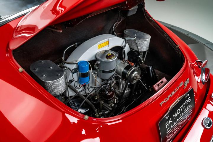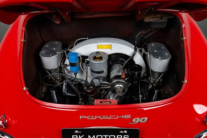 In 2022, the car's rear-mounted, flat-four was professionally rebuilt by Martin Steger, a well-respected name in the vintage Porsche community known for his meticulous approach to air-cooled engines. The work was supported by ProMotor Engines of Mooresville, NC, who handled all machining and prep. The build features reconditioned dual carburetors, a NeuTek SX-1 camshaft, and a set of 86mm pistons and cylinders sourced from Shasta Design, a trusted U.S.-based supplier of air-cooled Porsche internals. Shasta's cylinders are CNC-machined in the USA from Dura-Bar cast iron, a robust, consistent material well-suited to vintage engine architecture. They're matched with forged JE pistons built to Shasta's specification, designed to increase performance without sacrificing longevity. Paired with the SX-1 cam, this setup delivers a noticeable bump in output and drivability, bringing the car to an estimated 1720cc displacement. It provides more torque, better throttle response, and confident power delivery while keeping the soul of a 356 intact. All supporting components (gaskets, seals, valve guides, screws, and fasteners) came from Stoddard, a name synonymous with quality vintage Porsche parts. The original Type 741 4-speed manual transaxle remains in place and was treated to a new clutch during the rebuild, completing a cohesive, road-ready powertrain.