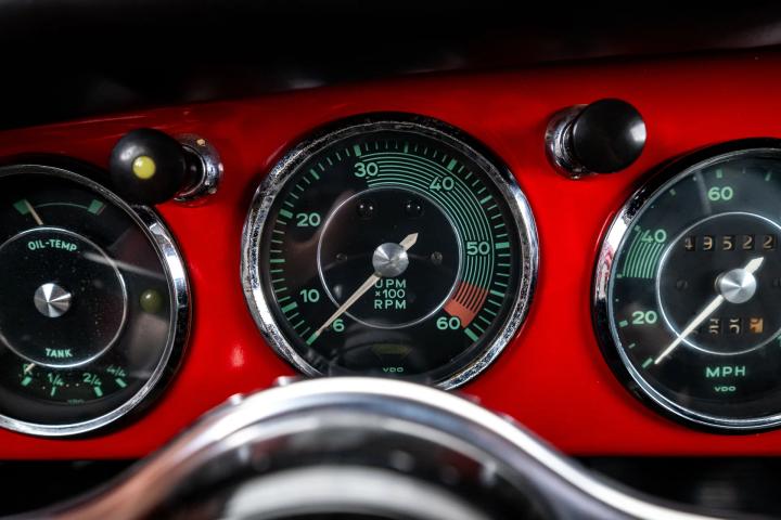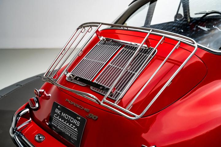 The exterior was repainted in 2024 by WRG Body Shop in Charlotte, NC, a professional refinish that shows excellent quality throughout. While the car's original factory color showed evidence of Smyrna Green, the current finish appears to honor Porsche's Signal Red...a bold, era-correct hue that suits the lines and personality of the 356 beautifully. Trim pieces, lighting, and lenses all appear to be original or authentic components, wearing a expected level of patina, free of major damage or aftermarket substitutions. Tasteful period touches like the rear luggage rack, headlight grills, and grey steel wheels with polished chrome hubcaps round out the classic Porsche look. The car rides on a set of Vredestein Sprint Classic tires, a fitting choice for vintage aesthetics and capable modern drivability.