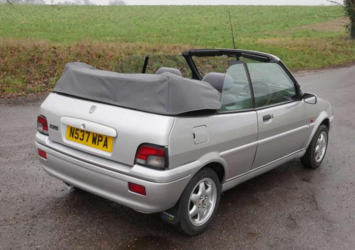 Very rare Metro convertible, only around 400 registered in UK and a few more went overseas, in excellent timewarp condition with great body and paint, very good hood and interior. 1.4 litre K-Series engine gives plenty of poke, 5 speed box enables better than 40 mpg to be obtained. Lots of old MOT's supports very low mileage – just under 30,000 from new, electric hood works well and is easy to operate. Comes with history, hood cover, Rover Metro booklet pack and an MOT. A very rare car that is useable and fun.