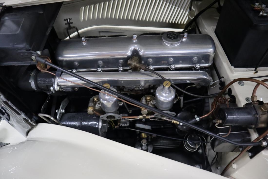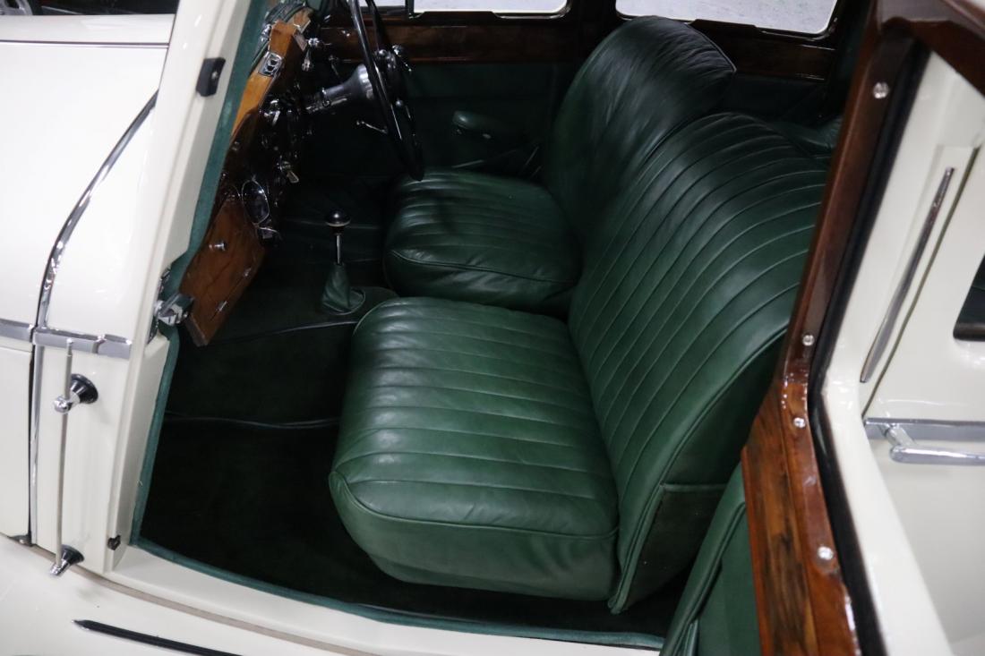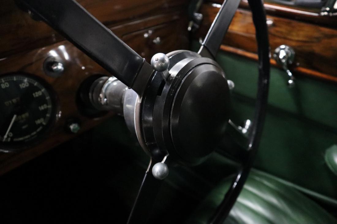 On December 21, 1937, this stately Jaguar SS 2.5 Liter Saloon left the factory to be shipped to Belgium. Here the car was registered on July 14, 1938. Many documents and the Heritage Centificate indicate that the original color was Suede Green. A somewhat dull color that fortunately was changed during the restoration to the also original Ivory. In combination with the beautiful green leather and tasteful wood finished interior, this is a real stunning combination.