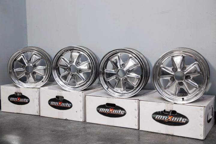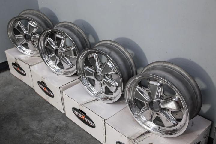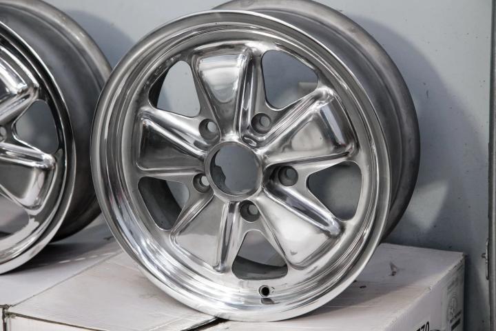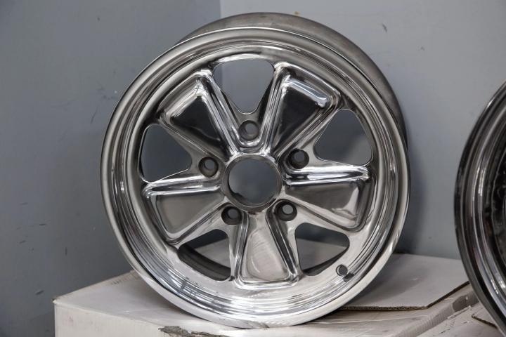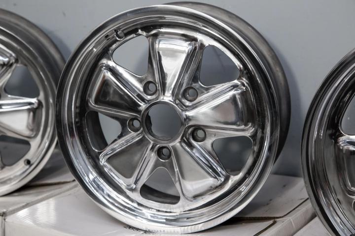 Complete set of four Fuchs Alloys from 1968-1973 Porsche 911 cars.The wheels are in excellent condition and ready to mount up for use.The wheels are true,cleaned and polished.6 x16