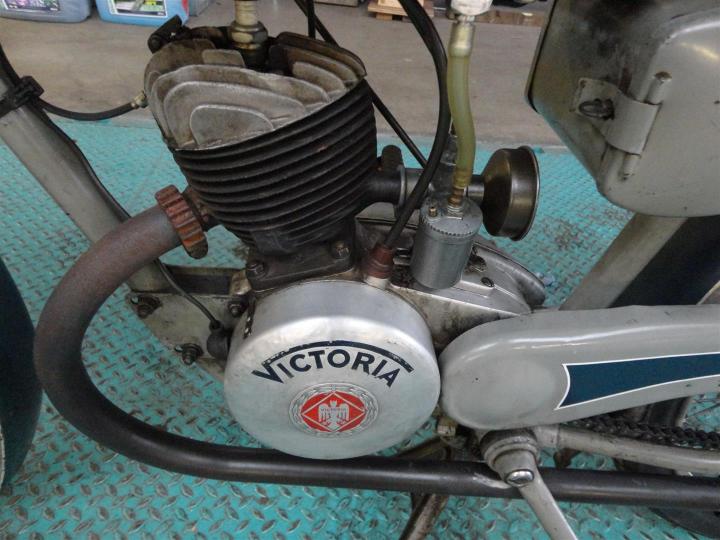 Ontzettend mooie, originele, oude en goede motor. Hij is sterk en loopt nog steeds. Met de originele lak uit 1940. Prachtig!! 100CC Victoria Fix Sport, klaar om mee naar huis gereden te worden. Met Nederlands kenteken. Grote keus in motor- en bromfietsen in de Stolze Collectie!