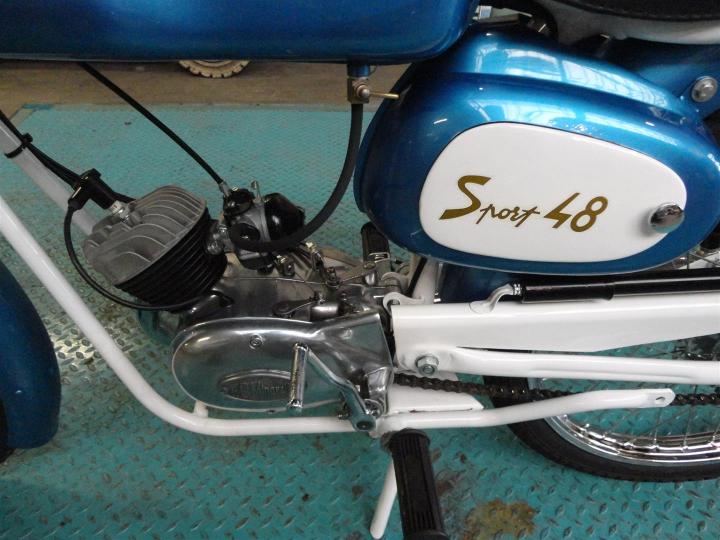 Prachtig gerestaureerde 50 CC brommer uit 1958. Een geheel originele, zeer zeldzame Italiaanse MIVAL Sport 48. Rijdt natuurlijk perfect, alles is NIEUW. Met NL kenteken. Grote keus in motor- en bromfietsen in de Stolze Collectie!