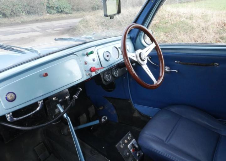 Stunning looking car in light metallic blue, great drive for pre-war car and a fascinating history. First owner was a war hero who owned the car until 1995, second owner had much work done by John Savage in 2002 (27 point list of works), further extensive work by Omicron in 2007, in 2013/14 was prepared for classic rallying but never rallied – Auto Design did work at a cost of over £45k including conversion to 12 volts, new brake and fuel pipes, re-wiring including many new and additional switches, overhaul of gearbox and brakes, heater, reinforcement of underside and fitting a sump guard, new steering box and exhaust, roll cage and harness. Some of these features including roll cage and harness have since been removed but it continues to benefit from many of the enhancements. Current owner has, we understand, fitted new starter and overhauled brakes. Body and paint are very good as is interior, fitted with comfortable MX5 front seats, but original ones in excellent condition come with car. Stunning lines, once warm, it is a delight to drive with very direct steering, good brakes and independent suspension with extraordinary ride for the age, engine revs willingly and crash gearbox is a delight to use. Only 3 owners from new, comes with Instruction Book, workshop manual on CD, lots of history, photos and service details plus a few spares.