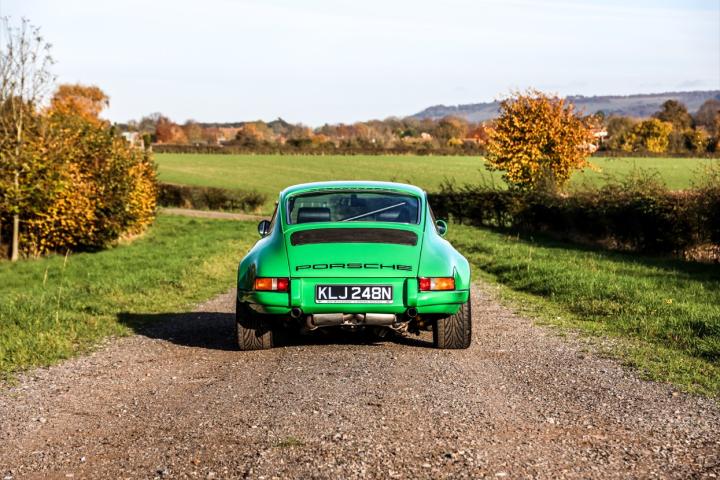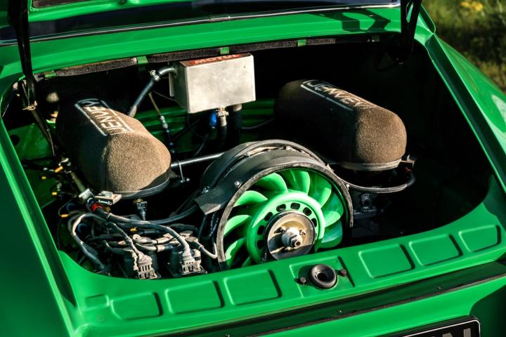 Works included removing the engine, gearbox and stripping the whole body, before replacing many of the panels with lightweight Kevlar or carbon panels before a respray in Viper Green. The original engine was replaced with a fully rebuilt 3.6 litre 964 unit running Jenvey throttle bodies and an OMEX electronic fuel injection system. This was mated to a close ratio quick shift G50 gearbox with a ZF limited slip differential along with upgraded brakes and suspension system. Other highlights include genuine 16” Fuchs alloys, Bonnet mounted driving lights, Bespoke exhaust system, FIA approved Heigo roll cage, Schruth harnesses, Heated windscreen. A period lightweight interior was installed which included Bielstein bucket seats, Alcantara trim and Momo steering wheel.