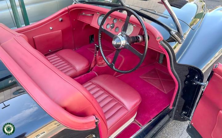 It has an upgraded and rebuilt 3.8 engine with modified exhaust manifolds, high lift cams, larger exhaust valves, all round disc brake conversion, an aluminium quick release race style petrol cap, an aluminium louvred bonnet, side pipes (which sound glorious), a rebuilt original moss gearbox, electronic ignition and electric fan upgrade.