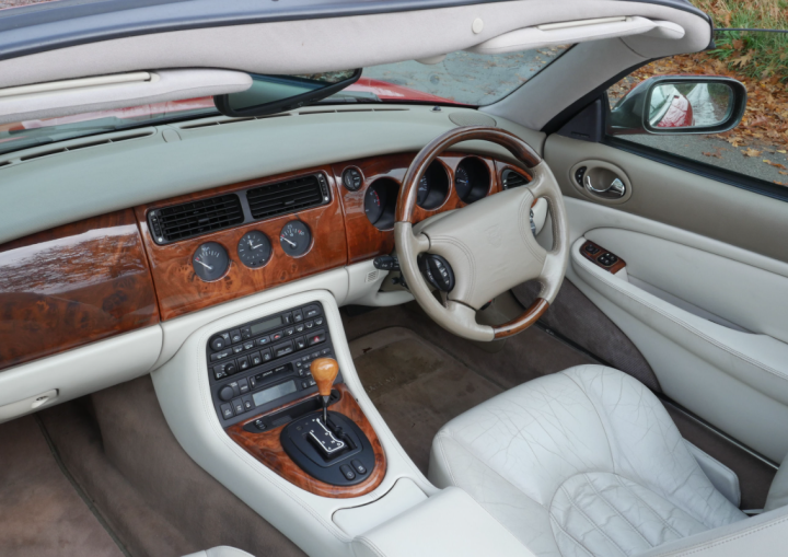 Superb in red with beige leather interior, just over 80,000 miles on odometer backed up by lots of old MOTs, 14 service stamps plus plenty of history, recent work to air conditioning, new MOT with no advisories, excellent body, paint, interior and roof, stainless exhaust, all the usual refinements, and roof cover. Comes with V5, complete Jaguar booklet pack including service history and MOT. XKR features mesh front grille, bonnet louvres, boot spoiler, 18" alloys, Eaton supercharger, 0 to 60 in under 6 seconds..
