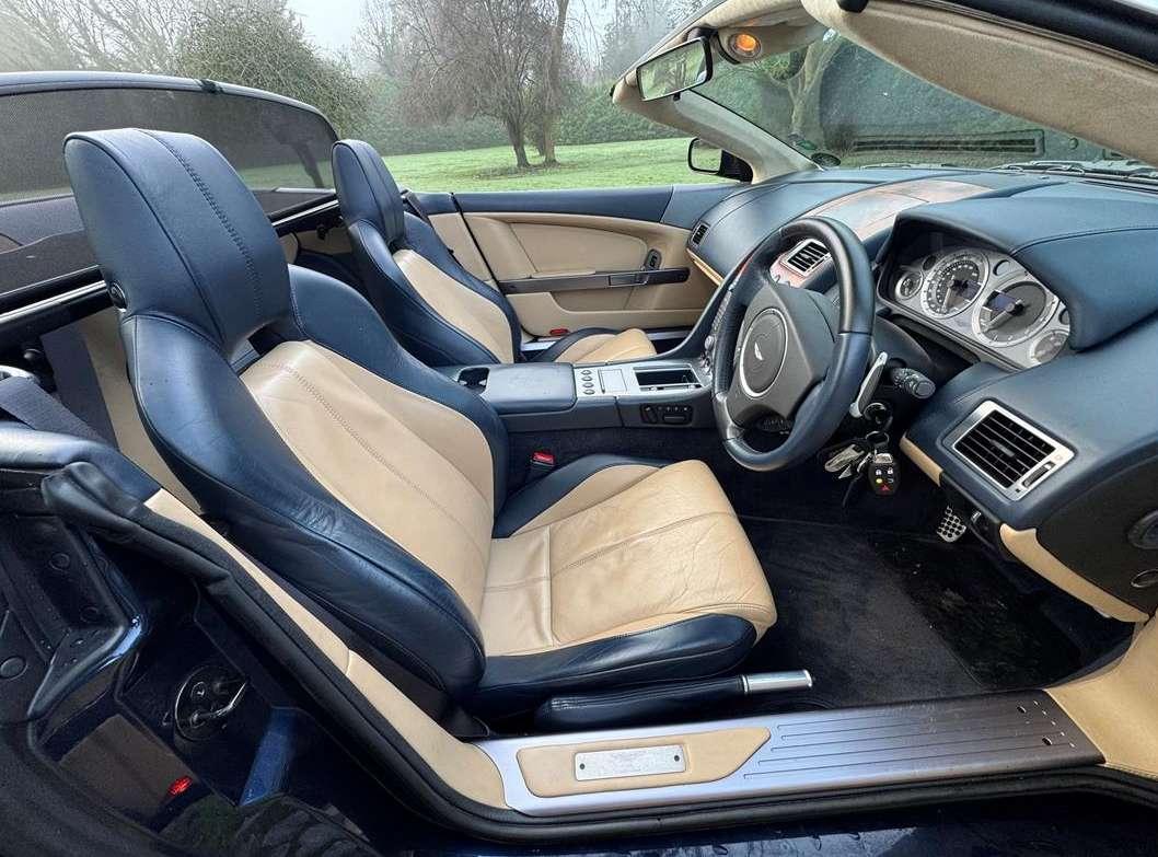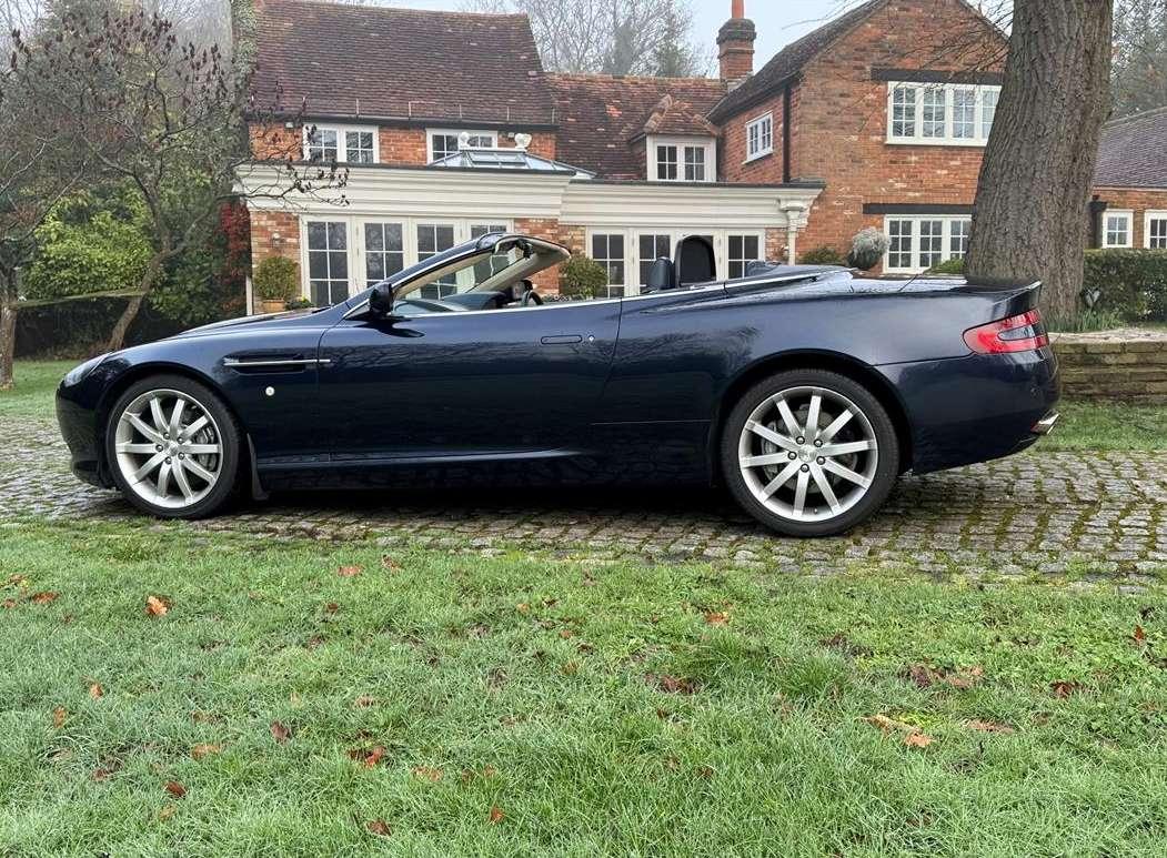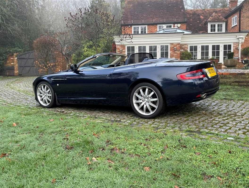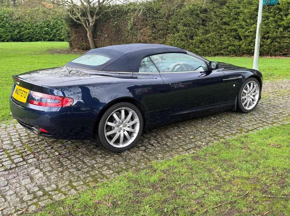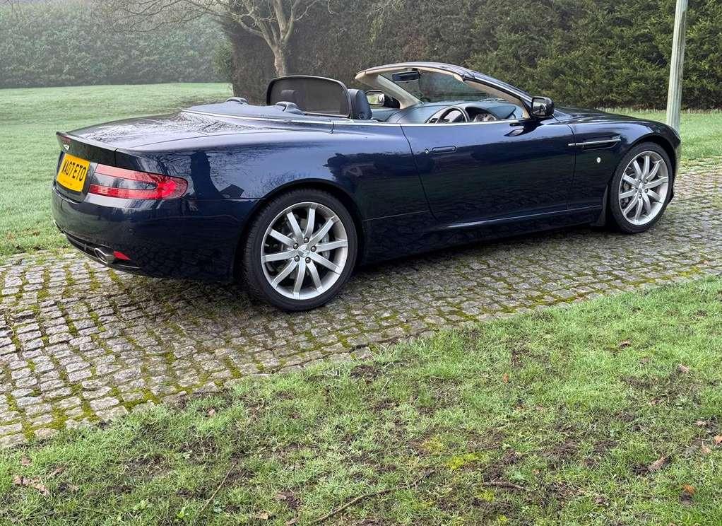 2007 Aston Martin DB9 Volante finished in Oxford Blue with a beautiful and very rare two tone dark blue and light sand beige hide interior and a dark blue mohair soft top. This low mileage motor car has had just two owners from new, the most recent of whom has owned it since it was less than 2 years old. Always annually serviced at HWM Aston Martin in Walton on Thames with 18 service stamps in the service book. It also comes with a complete MOT history and has never failed a test. We believe that the specification includes every extra that was available at the time of purchase and it reads as follows. Climate Control, Satellite navigation and blue tooth connectivity, electric heated memory sports seats with lumbar support, fully adjustable steering column, high spec Hifi system with CD player, multi-spoke alloy wheels with pale grey callipers, traction control, cruise control, a fully retractable electric mohair soft top, a wind deflector and power fold heated mirrors. In the boot of the car is the original Aston Martin umbrella, the original battery conditioner together with the tyre pump. We cannot stress enough just how good this car is to drive, which we deduce is mainly due to the level of regular maintenance, despite there often being only minimal mileage covered between services. Cost new was in the region of £135,000 and hence now incredible value at only £32,950