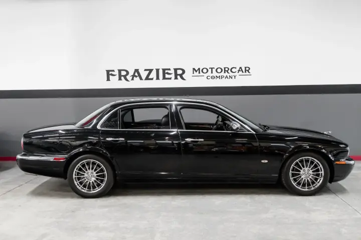 Now we move to topside of this well preserved Black on Black Vanden Plas example. The paint still looks like it did when pulled from the showroom in 2006 ! The interior wood trim is perfect ,the leather is soft and supple with no scuffs or scratches. The car is a non smoker car so it retains that wonderful Jaguar new car aroma.