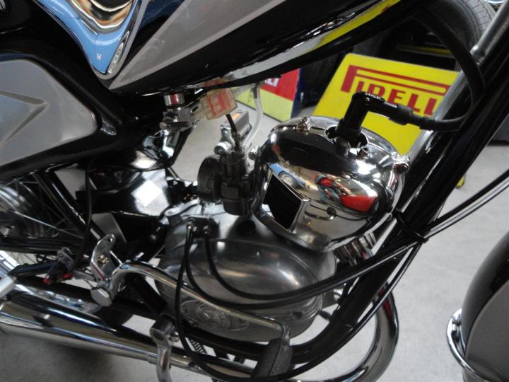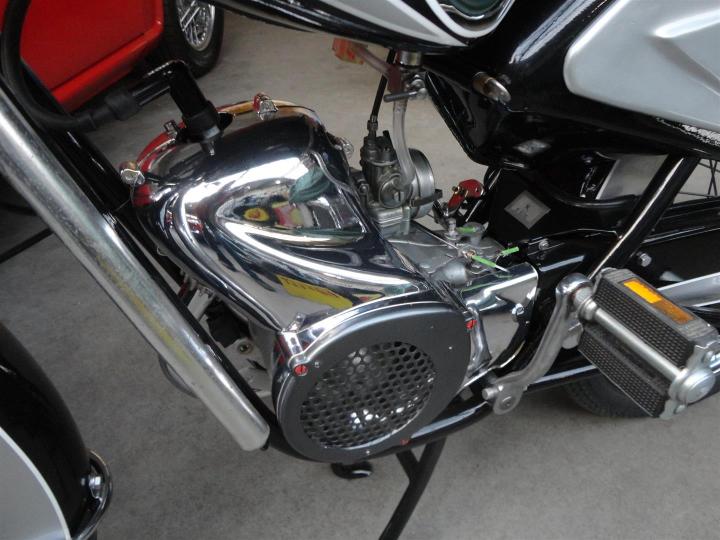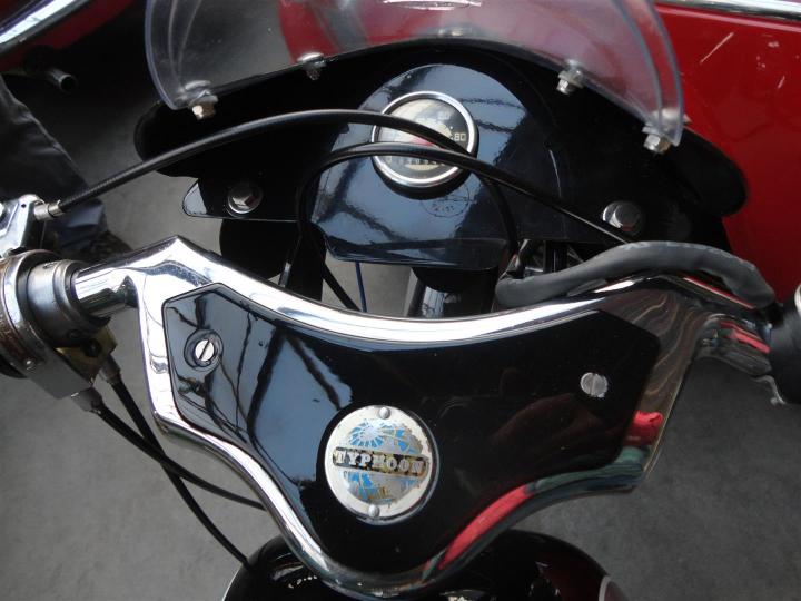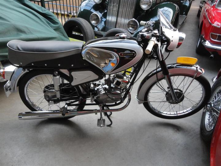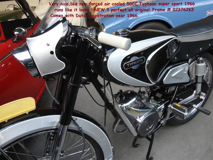Hele mooie, net nieuwe luchtgekoelde 50CC Typhoon Super Sport uit 1966. Loopt zoals het eruit ziet, nieuw! Perfect en volledig originele brommer. Heeft Nederlandse papieren uit 1966. Grote keus in motor- en bromfietsen in de Stolze Collectie!