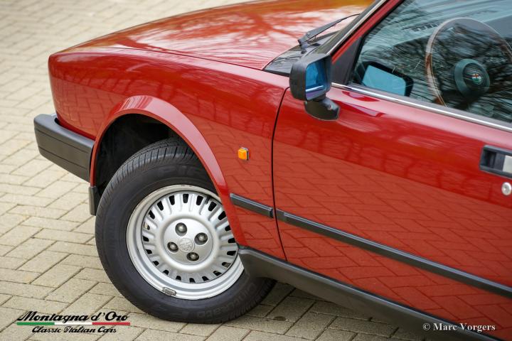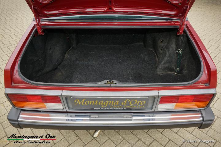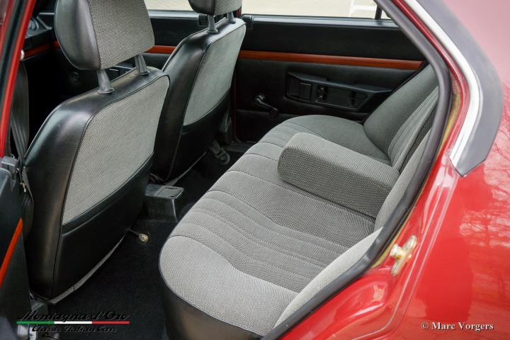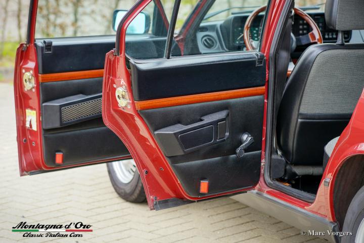 Alfa Romeo Alfetta 1.8 Berlina, jaar 1984 (eerste registratie 27-04-1984). Chassisnummer * ZAR01687 * 08520X *, motornummer AR01678 * 08520X *. Kleur Rosso Veneziano 536. Deze prachtige Alfa Romeo Alfetta werd nieuw verkocht in Italië. De auto is onlangs gekocht van de eerste eigenaar, de heer Giuseppe uit Ragusa. Deze Alfetta 1.8 Berlina verkeert in een fantastische en volledig originele staat en de auto heeft vanaf nieuw slechts 69.706 kilometer gereden. De Alfa Romeo Alfetta is een sportieve klassieke sedan met mechanische details van een sportwagen … Een aluminium viercilindermotor met dubbele bovenliggende nokkenassen, een 5-traps “transaxle” -versnellingsbak vlak voor de achterwielen voor 50-50 gewichtsverdeling, schijfremmen rondom en een de-Dion achteras. De auto rijdt, stuurt, en remt perfect! De automobiel verkeert in excellente originele conditie! De carrosserie is perfect en toont zijn originele lak, het interieur vertoont nagenoeg geen gebruikssporen. Deze prachtige Alfa Romeo Alfetta 1.8 Berlina wordt geleverd met de originele boekjes en twee sets sleutels. Een zeldzame vondst voor de Alfa Romeo liefhebber en/ of verzamelaar!