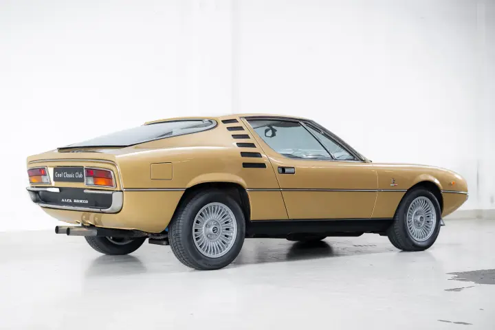 This 1974 Alfa Romeo Montreal comes in the outrageously extravagant and original color ‘Oro Metallizzato’ — the kind of gold that makes you want to wear a thick chain over an open polyester shirt. And we absolutely love it. The party continues inside with an interior just as striking: Avana Beige. It’s the color of a vintage tuxedo — luxurious and suave — and it feels like it’s about to offer you a bottle of Chivas Regal and a lighter. This is the car for the person who doesn’t ask for attention — they simply command it.