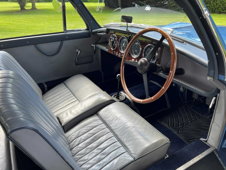 1955 Aston Martin DB2/4 finished in original Blue Haze with an exceptionally good interior, in pale grey hide with a recently re-veneered Walnut dash panel and best quality, dark blue Wilton carpet throughout, edged in blue leather and recently re-trimmed. It is one of the last of the original DB2/4’s to be produced, prior to the MkII arriving in late 1956 and hence has the benefit of the larger 2.9 engine which was then carried over to the MkII. Chassis No LML-881 comes with its original engine No VB6J-353 which according to the file was the subject of a complete rebuild as part of a £120,000 restoration carried out by “The Aston Workshop” prior to being sold to the last owner. Within the accompanying history file, are a good number of recent invoices amounting to over £18,000 on upgrades during the last 4 years. The car has had only 6 owners in 68 years and presents in superb condition and is a pleasure to drive. Always happy to consider an interesting part exchange. Priced to sell at £135,000