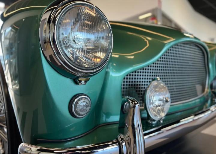 The body is in good condition with beautiful sheet metal and beautiful panel fittings. The car has beautiful chrome and stands on original wire wheels.