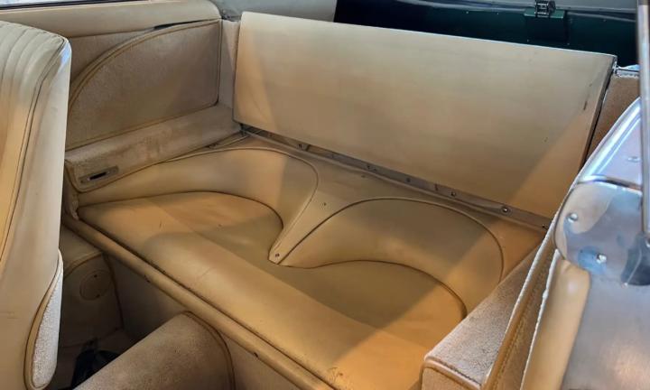 Das Innere des Autos ist genauso schön. Vor allem in Anbetracht der einzigartigen Tatsache, dass dies eine originale erste Innenausstattung ist. Das Leder hat eine schöne Patina, die Teppiche sind in gutem Zustand, ebenso das Armaturenbrett und die Instrumententafel. Der Dachhimmel ist mit Filz bezogen, der sich ebenfalls in einem sehr guten Zustand befindet. Dinge wie das Lenkrad und der Schalthebel für das Getriebe sind ebenfalls komplett original und sehen wunderschön aus.
