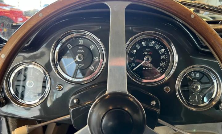 Der Motor läuft wunderbar und das Getriebe schaltet präzise, das sind auch völlig matching numbers. Darüber hinaus ist das Auto auch mit einem gut funktionierenden Overdrive ausgestattet. Das Differenzial ist selbstverständlich geräuschlos und Fahrwerk und Bremsen sind ihrer Aufgabe mehr als gewachsen. Der Motor ist mehr als stark genug, um den DB2 auch nach heutigen Maßstäben sanft beschleunigen zu lassen. Der Motor klingt sehr gut und hat einen sehr brauchbaren Mittenbereich. Sehr wenig schlägt den typischen Sound eines fitten Six-in-Line. Darüber hinaus hat dieser DB2/4 den zusätzlichen Vorteil, dass es sich um eine sogenannte Mark 3-Version handelt, die von Kennern als der am besten fahrende DB2/4 bezeichnet wird.