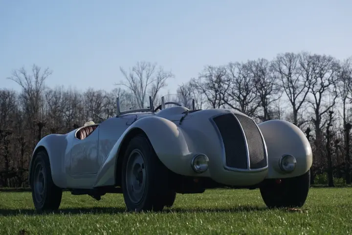 Ancienne Fiat 1500 Barchetta retrouvée dans une grange et remodelée par Touring. La voiture est en état de marche et de conduite mais nécessite une restauration.