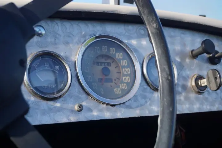 The chassis is in rust-free condition. And will need very little to no attention. The body will need some attention and a respray to have it shiny and smooth again. Or… take care of the mechanical aspect and leave the car as much original as possible. This 1500 Barchetta is powered by its, 1500cc, 6-cylinder in-line engine with the matching 4-speed gearbox. It is quite a vivid car to drive with its lightweight body/shape. To feed the engine, a set of 3 solex carburetors has been placed. In order to stop the little car, you will find drum brakes in the front and rear set behind some nice alloy wheels with Michelin tires on top of it.