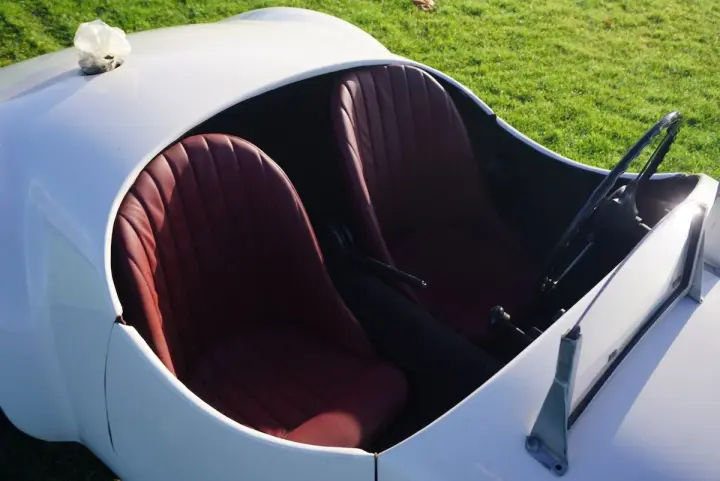 Pour conduire la voiture, le conducteur et le copilote s'installent confortablement dans les sièges baquets en similicuir bordeaux. Assis derrière le volant, on surplombe le tableau de bord en alliage soigné qui n'accueille que quelques cadrans et boutons de commande. Sobre mais élégant ! C'est une parfaite voiture de croisière à apprécier, ou mieux encore, elle serait parfaite pour participer à des rallyes historiques car le rapport poids/puissance est tout simplement excellent. Elle pourrait même être envisagée pour participer à de grands rallyes tels que les Mille Miglia ou d'autres.