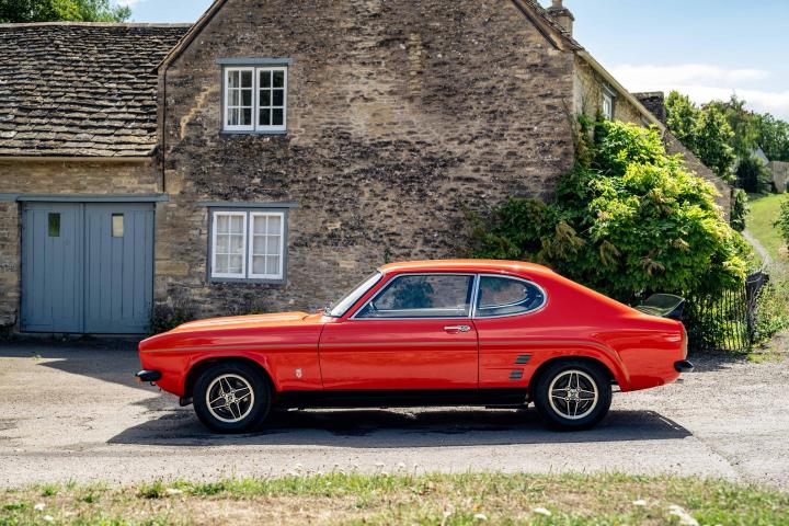Announced to the press in late 1973, just 250 cars were to be built, all right-hand drive and featuring the distinctive spoiler kit and larger engine to make the Capri competitive in Group 2 once more. Derived from the 3.0 unit found in the Capri 3000GT, the RS3100 featured enlarged cylinder bores giving an overall displacement of 3098cc from 2993cc. Additional Cosworth derived upgrades included hand polished inlet manifolds, cylinder head ports and exhaust ports. Blue cam covers differentiated it from lesser versions. Obviously, there was a myriad of detail upgrades in all areas from suspension to braking.