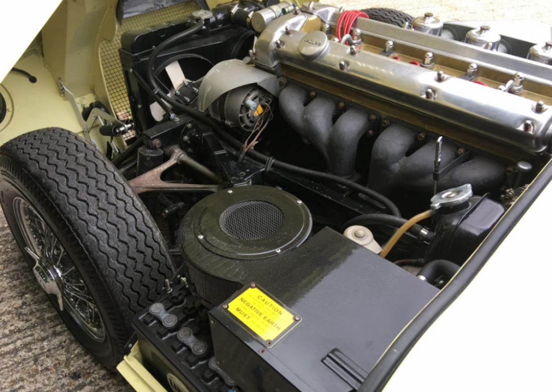 A massive history & photographic file comes with the car & also a photo book detailing the fastidious restoration that was undertaken. The result is close to perfection. The car is painted in Jaguar Primrose yellow with flawless new paintwork thoughout. To the interior is black hide along with black carpets. Pleasingly the original black leather seats have been retained piped in grey & are in super order.