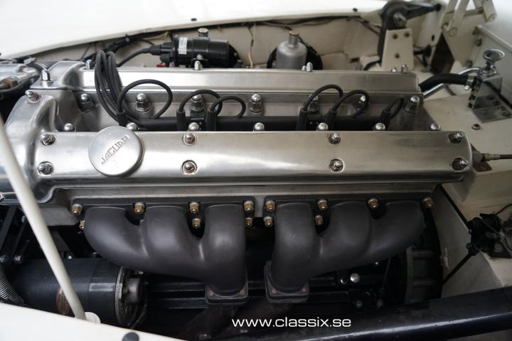 The car was prepared to participate in the Mille Miglia in 1988, but unfortunately, there was no space available. The Jaguar XK120M then enjoyed a quiet life in Mr. Wramell's collection until 1996, when the car was sold to a new owner who used it only on beautiful summer days. On one of these drives, a noise developed from the engine. When the camshaft chain was checked, it was found that the chain tensioner for the camshaft drive had broken and that this had been the reason for the noise problem mentioned above. Subsequently, the engine, including the clutch assembly, was completely disassembled, the engine block cleaned, and the engine totally rebuilt with every component inspected and exchanged when deemed necessary. Finally, the engine was run in a test bench at Bo Ridström Racing AB and its performance was confirmed. The engine and gearbox now run perfectly.