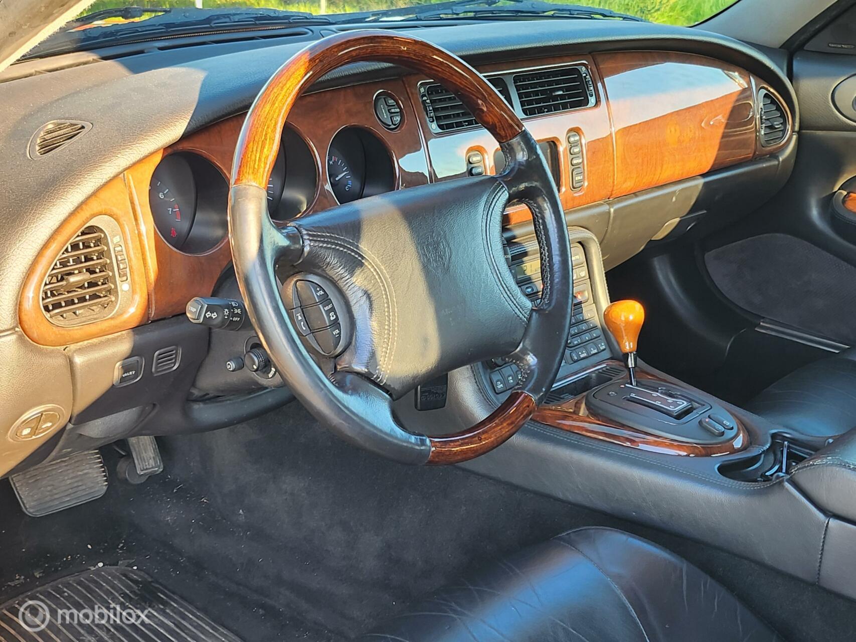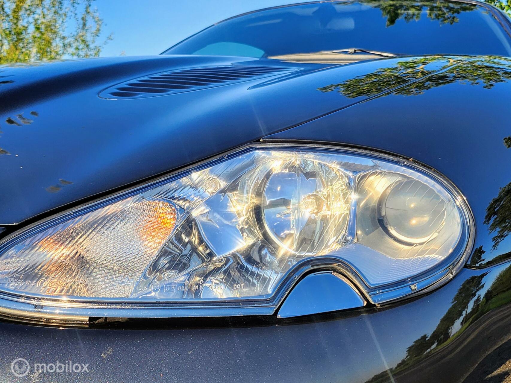 De 20 inch wielen too much? Wij vinden van niet, want hoe dik staat het onder deze zwart-zwarte xkr? Nee niet origineel, maar wel heel vet. Een monster van een klassieke auto, bijna tegenstrijdig, de über prachtige klassieke lijnen, met de supercharged v8 met 400 pk. Een echte muscle car, maar dan in lieflijke vorm. Bel ons voor het hele verhaal van deze Jaguar. Wij hebben 'm in ieder geval uitgebreid test gereden. Met uitermate veel plezier.
