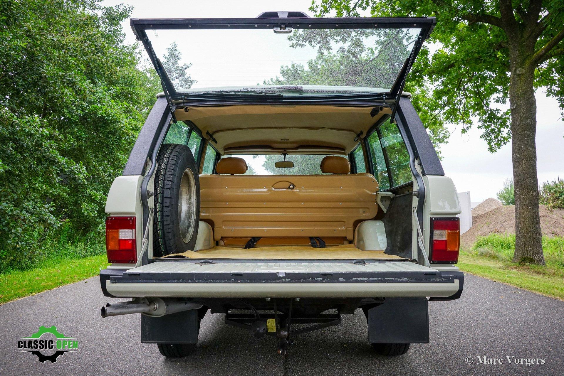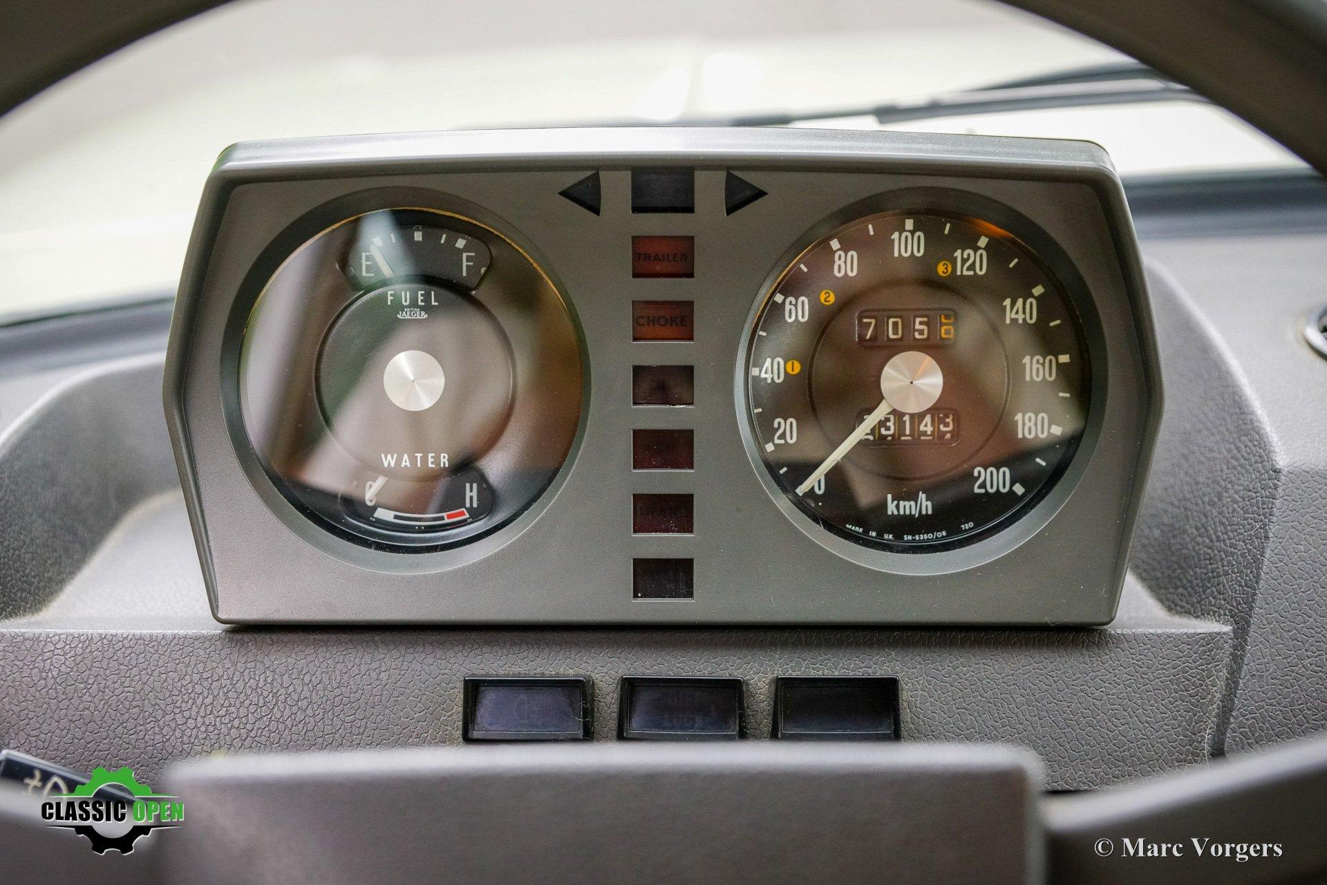 Deze robuuste maar luxe 4x4 in jaren 70-stijl (de ‘daddy’ van alle moderne SUV's, maar met ECHTE terreinkwaliteiten!) beschikt over een uitgebreid dashboard, compleet met extra centrale meters, zeer comfortabele stoelen, stuurbekrachtiging en airconditioning. Deze magnifieke auto is door de jaren heen zeer goed onderhouden en verkeert in een zelden geziene zeer originele en uitstekende conditie!