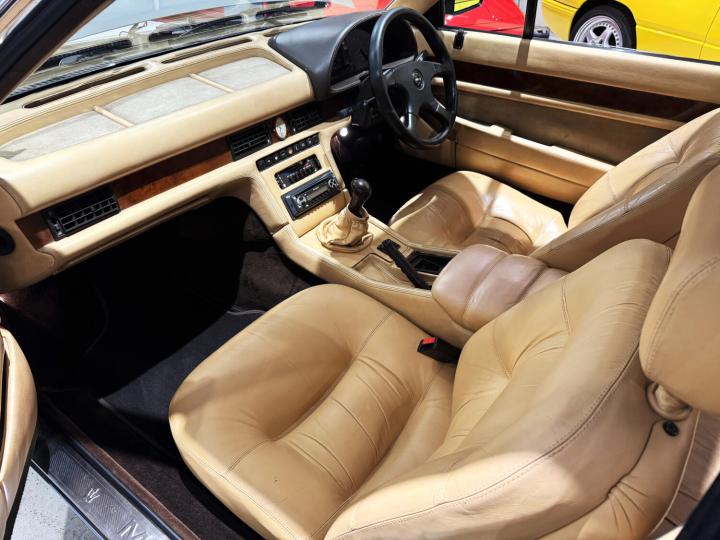 Originally registered F664 OYM – a series of plates that were issued to James Young, Maserati dealers in central London. The original warranty book is with the history, noting that the first service was carried out by Maserati service agents Chagford Street Garage in central London in October 1989 – and also that there was a speedo change at 8,889 miles. From then until 1992, the time of the car’s first MOT, there is a gap in the history but since then the MOT history is comprehensive and shows steadily increasing mileage to the current mileage of 75,000 (though effectively this is plus that 8,889). For much of its life, it had a private registration and when this was removed, it was given the current plate.
