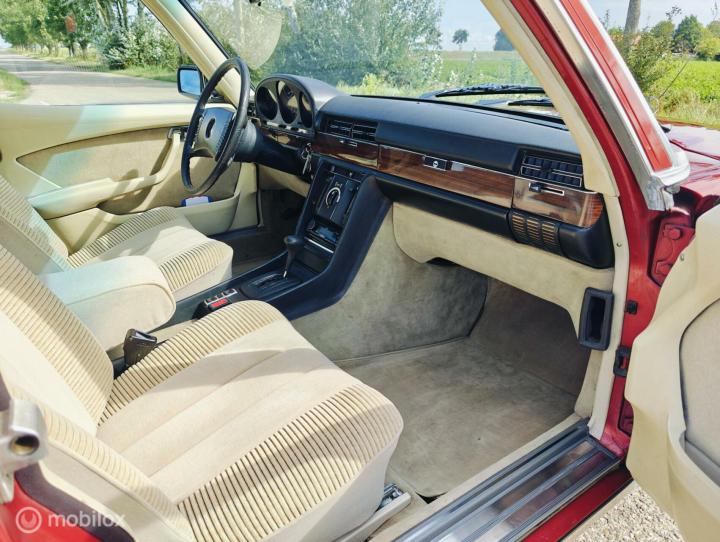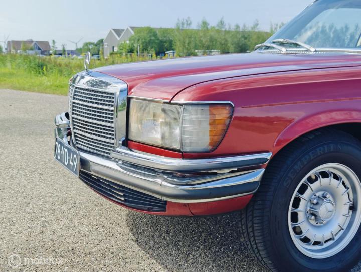 In zeer nette staat verkerende roestvrije! Mercedes 350SE in de chique kleur Red metallic. Oorspronkelijk nieuw in Italië geleverd en sinds 2001 op Nederlands kenteken.