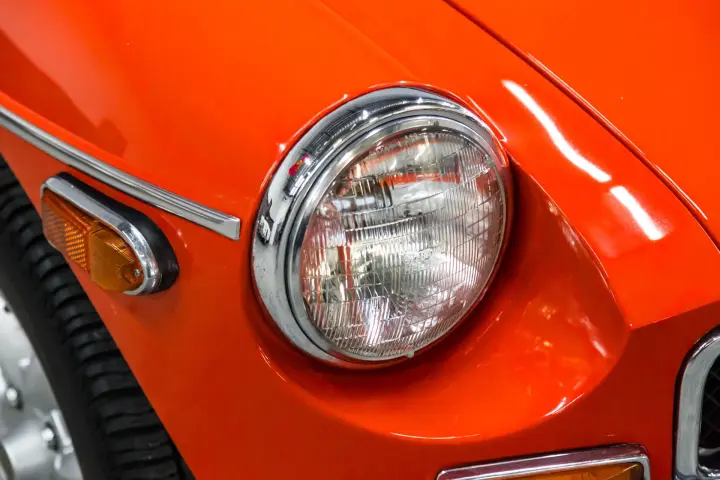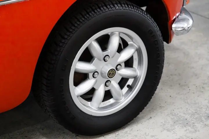 The paint is as nice as reflected in the picture presentation .The chrome bright work is nice, crisp ,and straight. Tires are deep in tread. The car has a new soft top. Seats are full and without any splits or tears ,carpets are good, door cards are good.