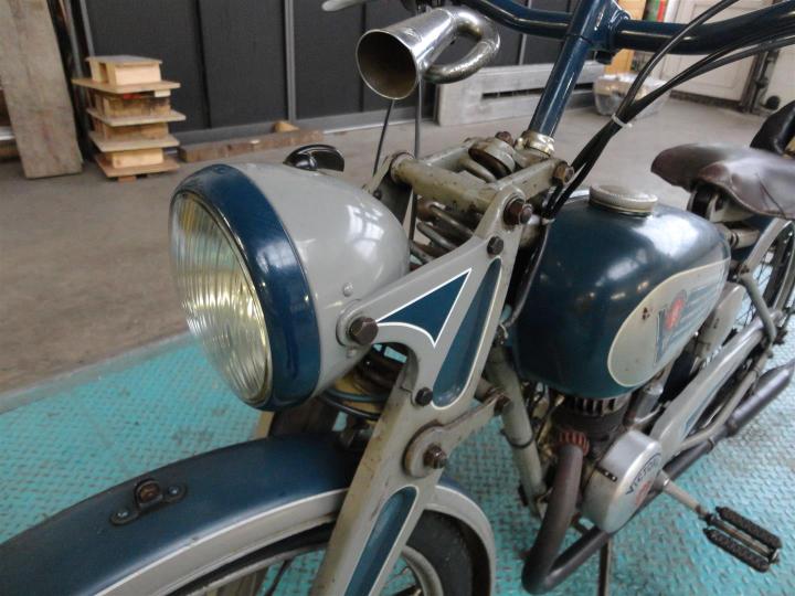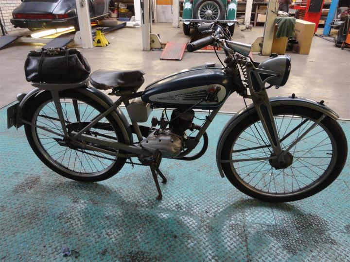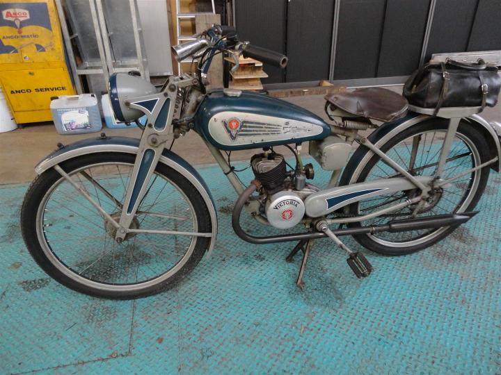Ontzettend mooie, originele, oude en goede motor. Hij is sterk en loopt nog steeds. Met de originele lak uit 1940. Prachtig!! 100CC Victoria Fix Sport, klaar om mee naar huis gereden te worden. Met Nederlands kenteken. Grote keus in motor- en bromfietsen in de Stolze Collectie!