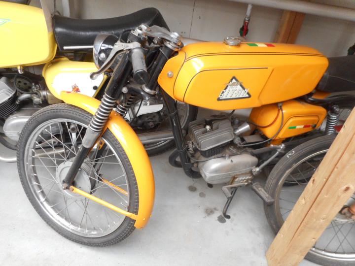 Een Moto Gitan. In Nederland ook wel Tansini genoemd. Met een mooie gele lak in goede staat. Uit de jaren zeventig. Grote keus in motor- en bromfietsen in de Stolze Collectie!