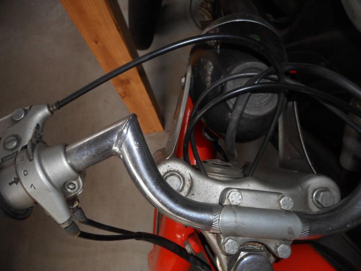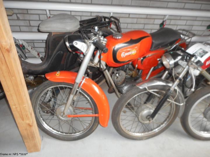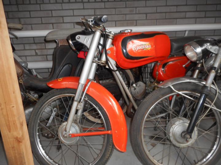 Een bijzondere brommer. Een oranje Vechietti. Hij staat hier te koop.Het frame is van een Negrini. Grote keus in motor- en bromfietsen in de Stolze Collectie!