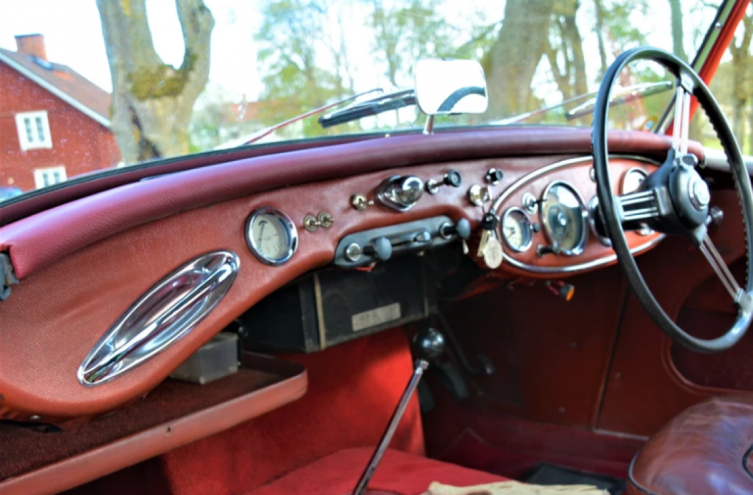 The Healey is in a wonderful original condition when it comes to the interior, where the leather on the seats has a nice patina from 1957 and most of the other interior is completely original. Bumpers are newly chrome-plated and new interior in luggage. Technically, the car is in very good condition with a renovated gearbox and overdrive, inspected forever and tax-free.