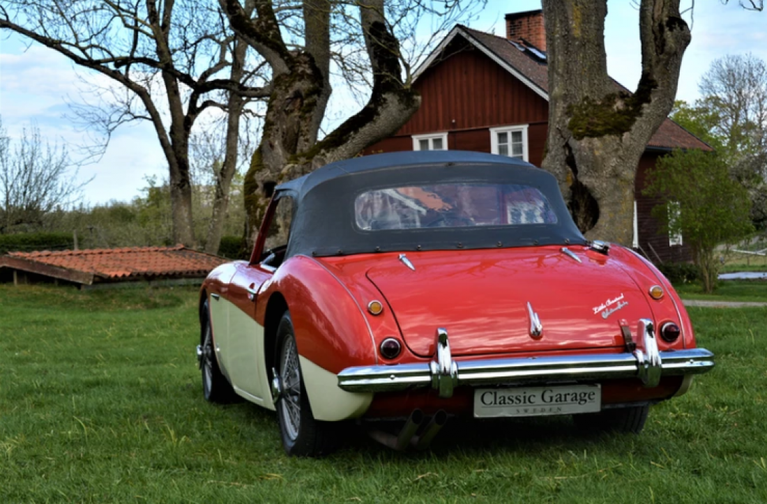 Very nice AH 100/6 with few users and the right equipment. The car came to Sweden in 2002 and has had one user in England since 1976, and two in Sweden. It has a new engine that is Works-tuned and machined to 3.3 liters, and mounted 2 SU HD8 carburetors, so now it leaves about 150Hp. It also got adjustable Koni dampers and a stainless steel Langford sports exhaust system.
