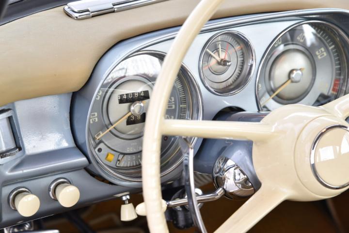 The BMW 503 offered for sale here is one of the first production cars (136 units) and was delivered by Motag in Switzerland on August 27, 1956. It is still in the original color combination (Matching Colors) and engine and chassis are Matching Numbers.