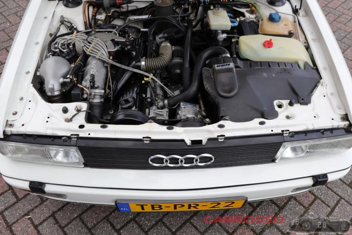 Onder de motorkap ligt de welbekende 5-cilinder turbo motor. Deze is gekoppeld aan een handgeschakelde 5-versnellingsbak en vormt samen een vermogen van zo'n 200pk. De motor loopt goed en schakelt soepel in zijn versnellingen. Recent zijn de klepsteelrubbers nog vervangen door een Quattro specialist. De unieke combinatie van zijn turbomotor en vierwielaandrijving bieden ongekende grip en acceleratie.