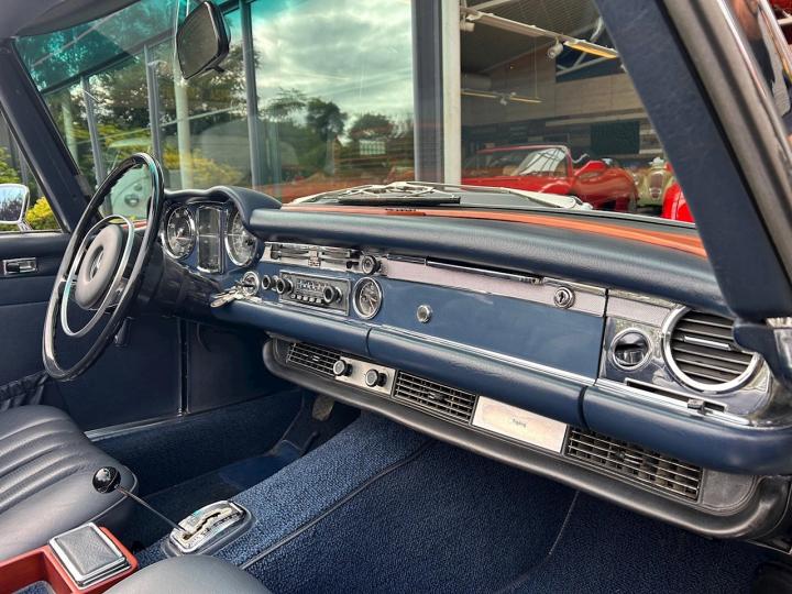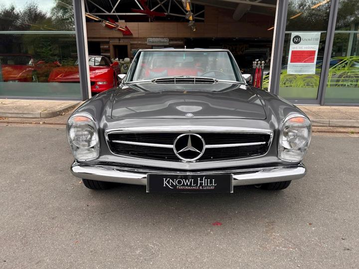 We are proud to offer this stunning Mercedes 280 SL Pagoda which has been beautifully restored in metallic grey with blue leather upholstery. This car was imported from California to the UK in 2014 then underwent a full restoration and converted to European specification prior to its registration in 2016. It comes complete with its hard top roof, original owner’s manual, service book, Becker audio manual, USA service directory, various receipts and invoices from its time in the US alongside all the restoration and service paperwork since the car has been in the UK. It is in need of nothing, everything works as it should and is ready and waiting to be thoroughly enjoyed by its new owner. If you have any further questions or would like to book an appointment to come and view this beautiful car please call a member of our sale team on 01628 825110. At Knowl Hill Performance & Luxury your experience with us is key, we offer full main dealer facilities from service, MOT and warranties to detailing, tyre changes and everything in-between. All our cars come fully detailed, and clear HPI certificate.