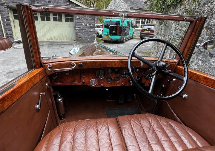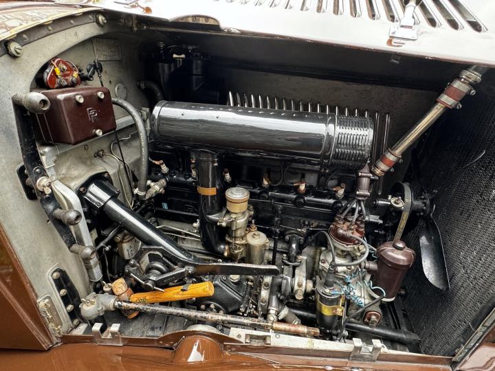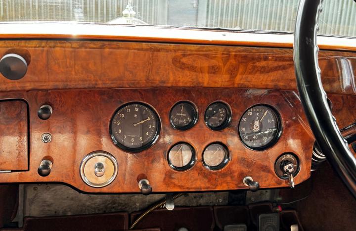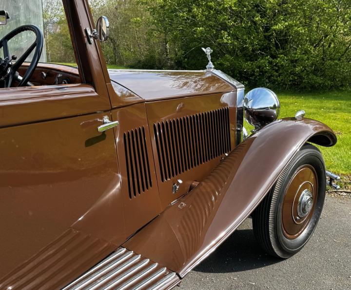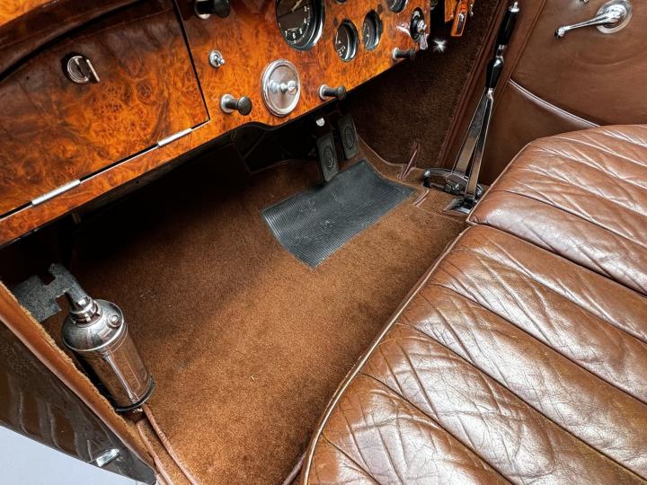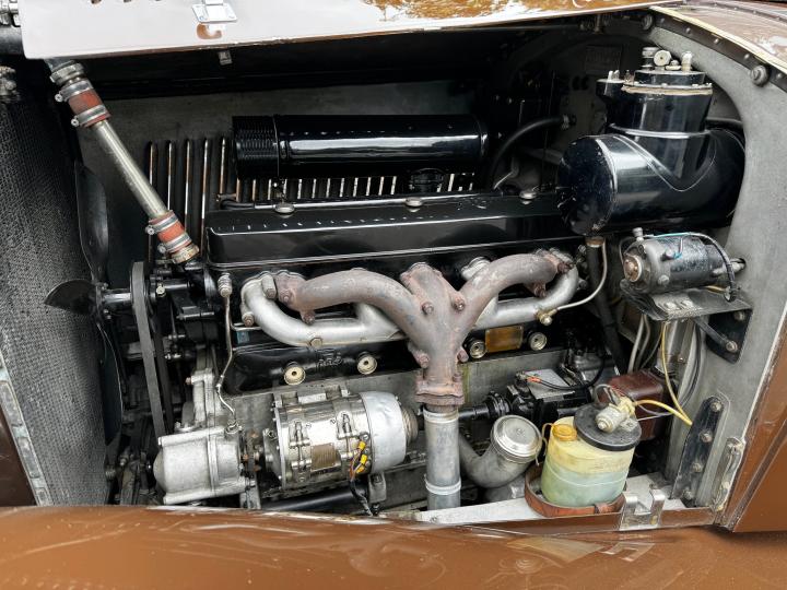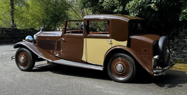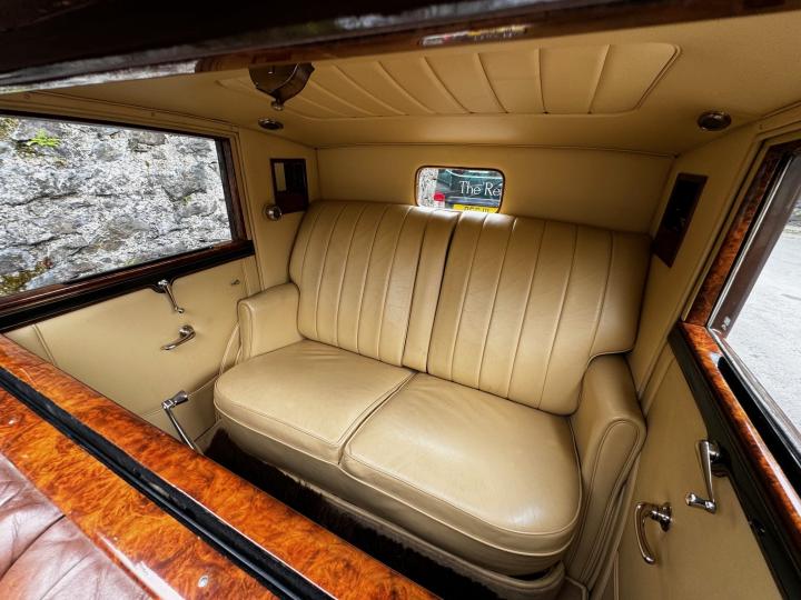 An appealingly unusual car, its design harking back to an earlier era, with faux canework, opera lamps, etc. It is, however, correct and as built, but benefitting from much attention, including restoration work in the USA many years ago, and continued attention in the UK since its return here in the 1970s. This work included an engine overhaul by Brunts of Silverdale, including new cylinder head and block, steering box rebuild, and more besides. Comes with a large, informative history file. The paintwork is in very good order, sharp and smart, as is the interior - brown leather to the front and cream to the rear, in both cases with matching carpets. Even the headlining is leather! The car features louvred bonnet and scuttle, Carl Zeiss headlights, Lucas 'owl eye' tail lights, twin tubular blade bumpers front and rear and a rear-mounted spare wheel. Running well, lovely all round and offered MoT tested.
