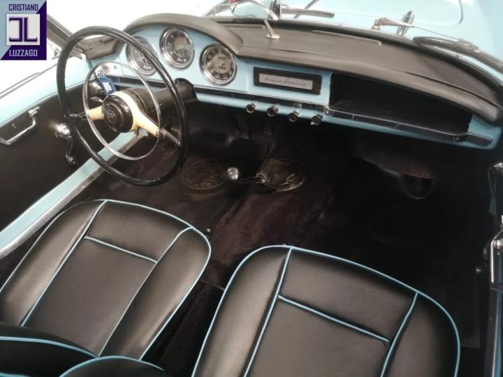 The original black Vipla upholstery, light blue paintwork, and black convertible top replicate the factory configuration, reflecting the refined elegance of the Pinin Farina design that defined the model’s timeless charm.